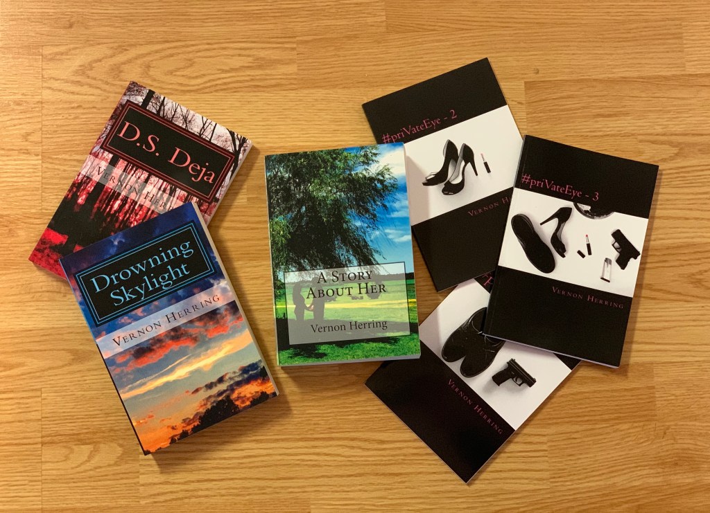 (Featured above are the copyrighted works I tried to independently publish and market but later pulled off the shelf. A Story About Her is the first novel I completed in 2006. Drowning Skylight and D.S. Deja are parts one and two of my time traveling trilogy and involves an intimate crew of characters looking to save their present timelines. #priVateEye is my three part romantic novella involving twin flames that become separated by a sinister evil. To find one another, they have to join the #priVateEye organization and uncover memories that have been mysteriously erased.)